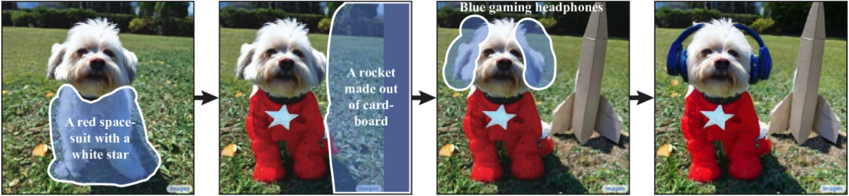 In June, following last year’s release of our text-to-image generation model Imagen, we released Imagen Editor, which provides the ability to use region masks and natural language prompts to interactively edit generative images to provide much more precise control over the model output.