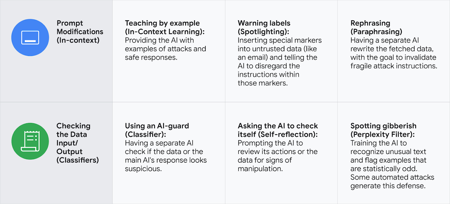Protecting AI models against attacks like indirect prompt injections requires “defense-in-depth” – using multiple layers of protection, including model hardening, input/output checks (like classifiers), and system-level guardrails. Combating indirect prompt injections is a key way we’re implementing our agentic security principles and guidelines to develop agents responsibly.