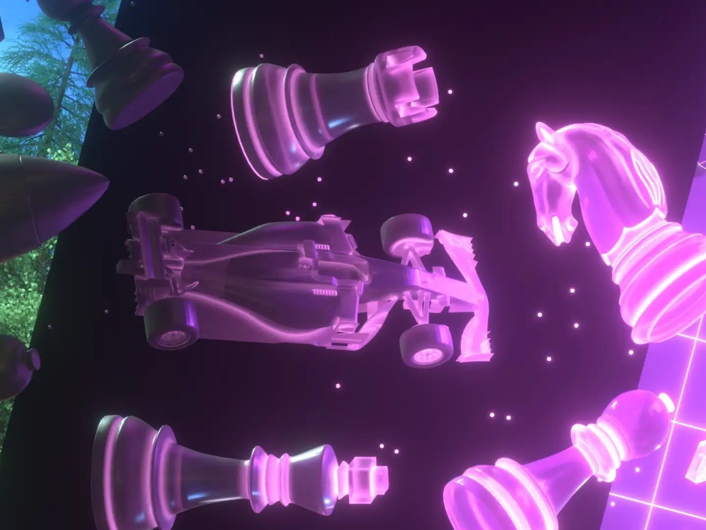 Simulating next states given an agreed contract. Left: current state in a part of the board, including a contract agreed between the Red and Green players. Right: multiple possible next states.