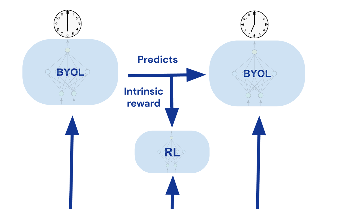 Inspired by the successes of bootstrap your own latent (BYOL) – which has been applied in computer vision, graph representation learning, and representation learning in RL – we propose BYOL-Explore: a conceptually simple yet general, curiosity-driven AI agent for solving hard-exploration tasks. BYOL-Explore learns a representation of the world by predicting its own future representation. Then, it uses the prediction-error at the representation level as an intrinsic reward to train a curiosity-driven policy. Therefore, BYOL-Explore learns a world representation, the world dynamics, and a curiosity-driven exploration policy all-together, simply by optimising the prediction error at the representation level.