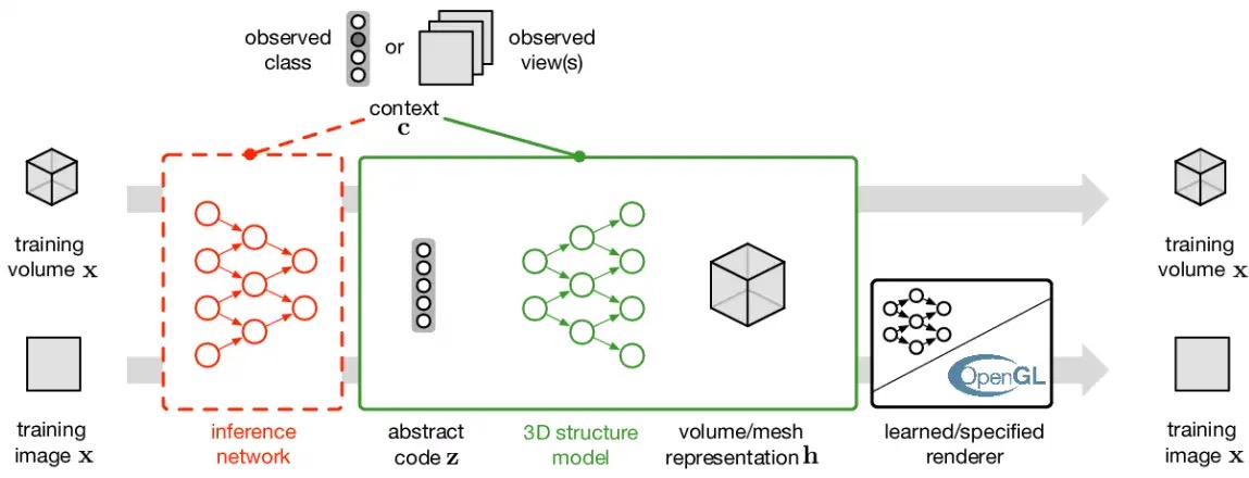 Imagine looking at a photograph of a chair. The image you see will be a complex function of the attributes and positions of the camera, the lights and, of course of the shape of the chair. Importantly, due to self-occlusion you never see the full chair, so there is an infinite number chair-like objects that would be consistent with what you see. Nevertheless, when asked how to imagine the chair's shape from a different point of view you will probably be able to do so quite accurately. Key to this ability is not just an implicit understanding of perspective, occlusion and the image formation process, but critically your prior knowledge of what a plausible chair ought to look like, which allows you to “fill in” the missing parts.