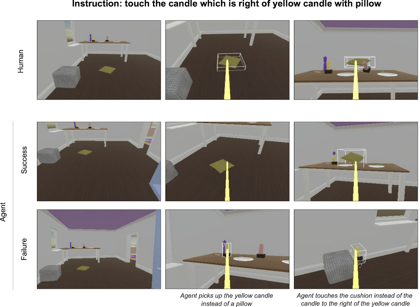 The STS methodology places agents in a set of behavioural scenarios mined from real human interaction data. Agents see a replayed scenario context, receive an instruction, and are then given control to complete the interaction offline. These agent continuations are recorded and then sent to human raters to annotate as success or failure. Agents are then ranked according to the proportion of scenarios on which they succeed.