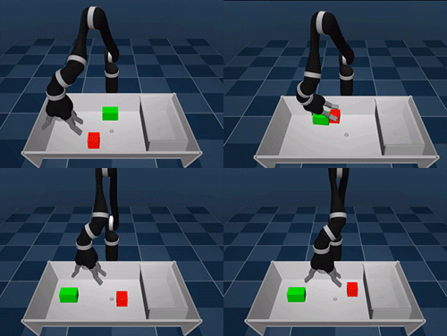 Control tasks, like tidying up a table or stacking objects, require an agent to determine how, when and where to coordinate the nine joints of its simulated arms and fingers to move correctly and achieve its objective. The sheer number of possible combinations of movements at any given time, along with the need to carry out a long sequence of correct actions constitute a serious exploration problem—making this a particularly interesting area for reinforcement learning research.