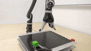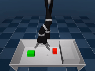On the real robot arm, SAC-X learns how to lift and move the green cube from scratch, never having seen the task before.
