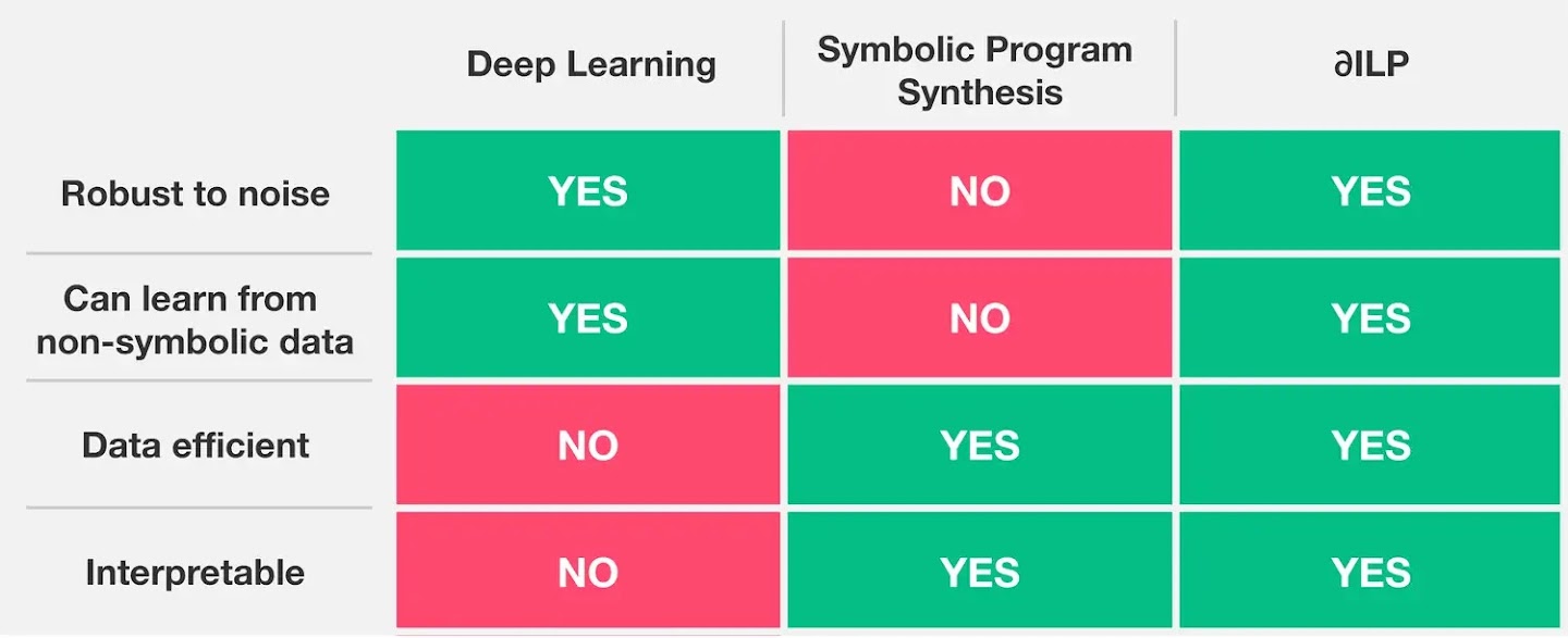 Our new paper, recently published in JAIR, demonstrates it is possible for systems to combine intuitive perceptual with conceptual interpretable reasoning. The system we describe, ∂ILP, is robust to noise, data-efficient, and produces interpretable rules.