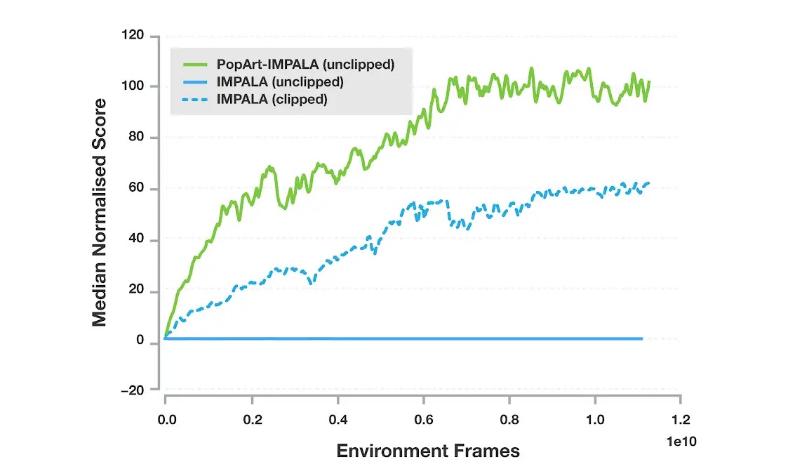 To resolve these kinds of issues, we developed PopArt, a technique that can adapt the scale of scores in each game so the agent judges the games to be of equal learning value, no matter the scale of rewards available in each specific game. We applied a PopArt normalisation to a state-of-the-art reinforcement learning agent, resulting in a single agent that can play a whole set of 57 diverse Atari video games, with above-human median performance across the set.