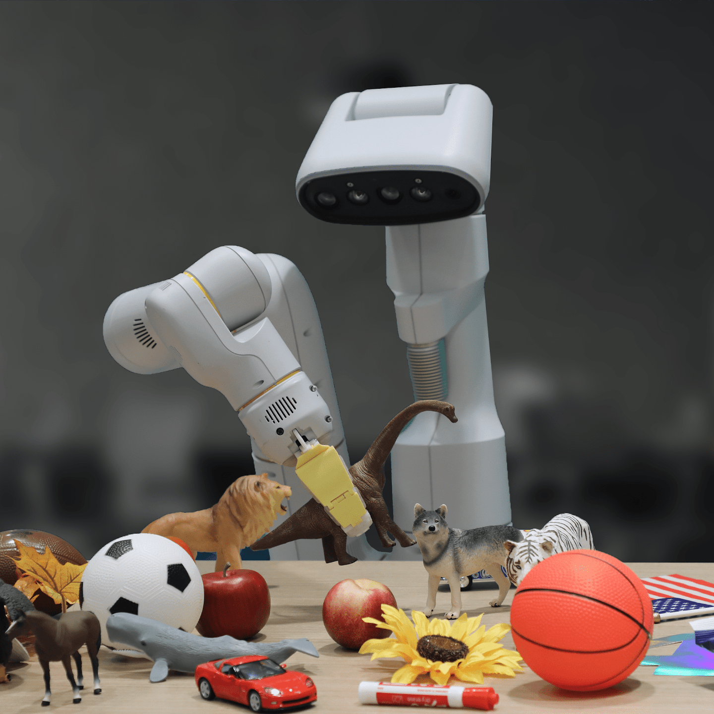 Robotic arms performing various tasks including those demonstrating its ability to identify objects, and its understanding of spatial awareness.