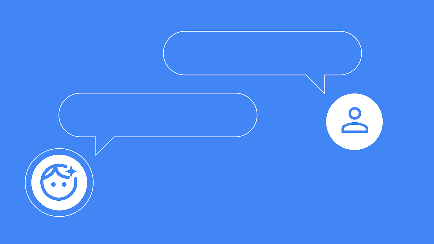 Illustration of an AI assistant and a person communicating in a human-like way.