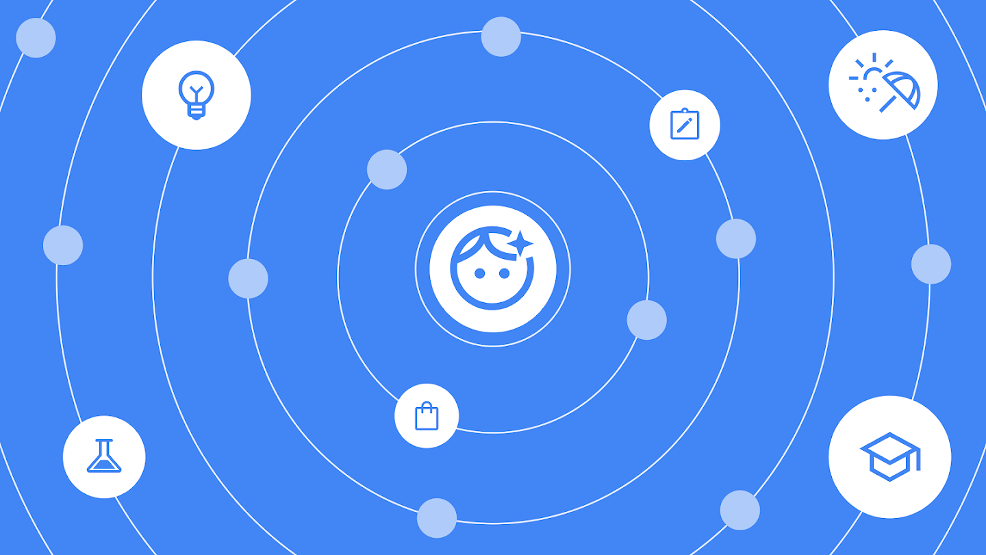 Illustration of the potential for AI assistants to impact research, education, creative tasks and planning.