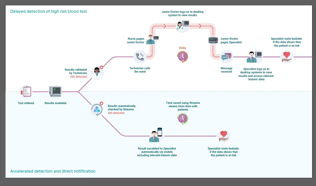 By getting existing patient data to the right nurse or doctor more quickly and simply, Streams gives them more time to focus on patients - without yet relying on AI.