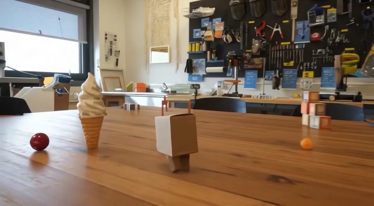 Promptable world events make it possible to change the generated world – such as altering weather conditions or introducing new objects and characters.